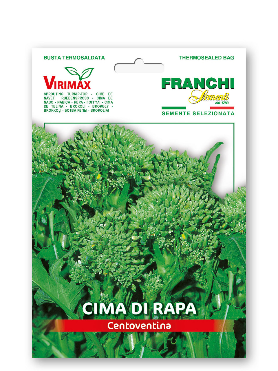 NEW Cima di Rapa Centoventina, Broccoli Raab Cima Di Rapa Centoventina. Late variety, very productive, also known as broccoli or turnip top.120 days from sowing. Upright plant with thin long leaves. Produces a number of tender sprouting broccoli florettes. These are very popular vegetable in Italy, especially in the South. There are an enormous number of varieties. The most common are Novantina and Centoventina (90 and 120 days) for the number of days it takes for the particular variety to mature. Cima di rapa is easy to grow if you follow a few simple rules. First, you can grow it at any time of the year. You do NOT have to grow it in cool weather. In southern Italy, they are planted in late summer and are harvested through the mild winter (that is the reason to grow varieties with different days to maturity: plant them all at the same time then harvest for months). Grow it that way if you live in an area with Mediterranean climate or with mild winters. Nice assertive taste. Can be grown from transplants but easiest from direct seed. Spring, summer, fall. One seed/inch in rows 12 inches apart planted about 1/2 inch deep. Keep well watered until germination. Thin to one plant every five-six inches (you can let them grow some and pull the baby plants and toss in a salad or cook)